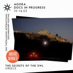 Winner of the ERT Prize for best Greek Pitch at the Agora Pitching Forum of the 23rd Thessaloniki International Documentary Film Festival